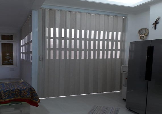 Pintu lipat PVC , dengan desain ringan dan minimalis sangat cocok untuk penyekat ruang ukuran skala kecil. Menggunakan rel Alumunium